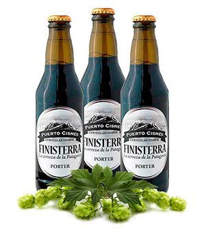 Cerveza Artesanal Finisterra. 4 variedades: Porter, Pale Ale, Munich Helles, Ale con Aji. Desde la Patagonia. Puerto Cisnes, Region de Aysen, CHILE.